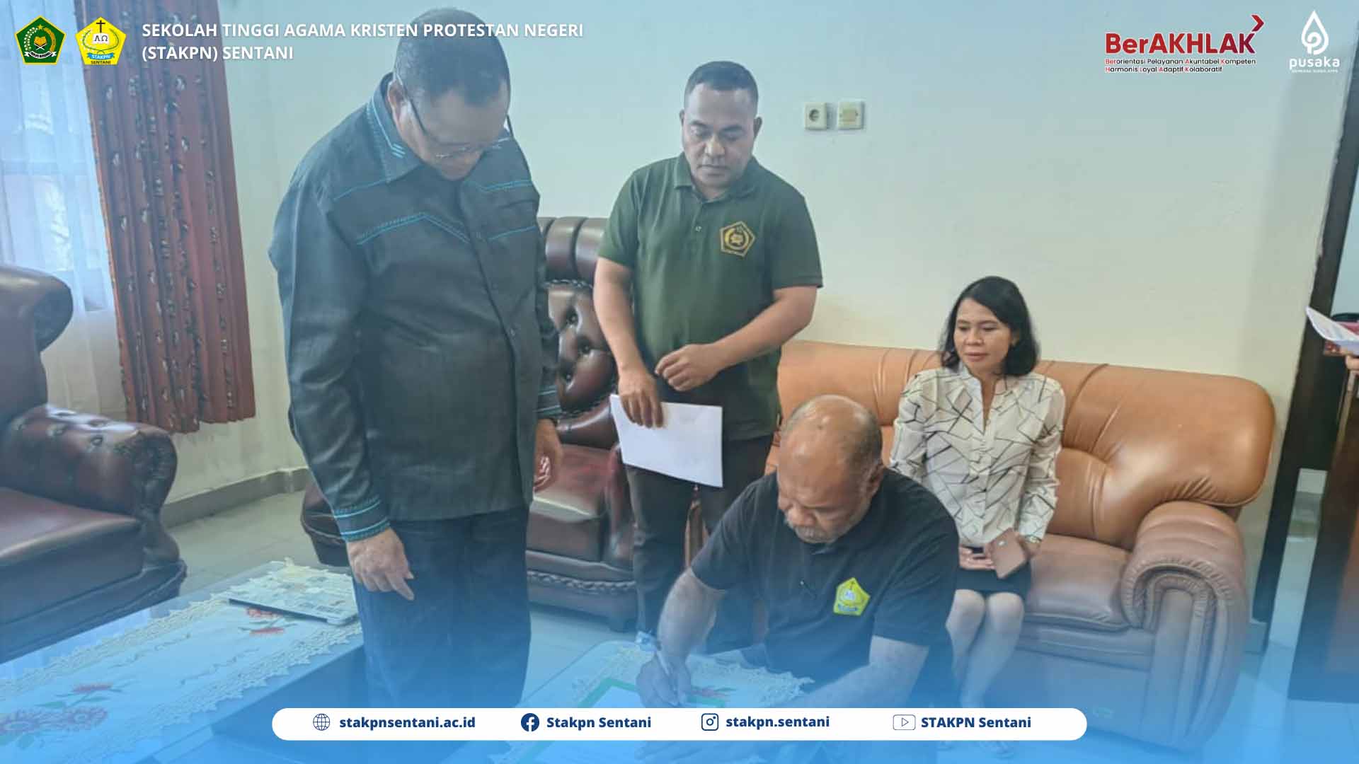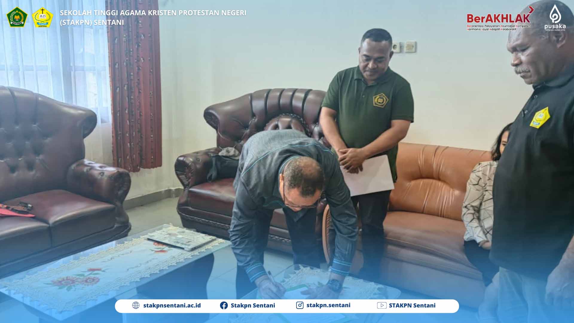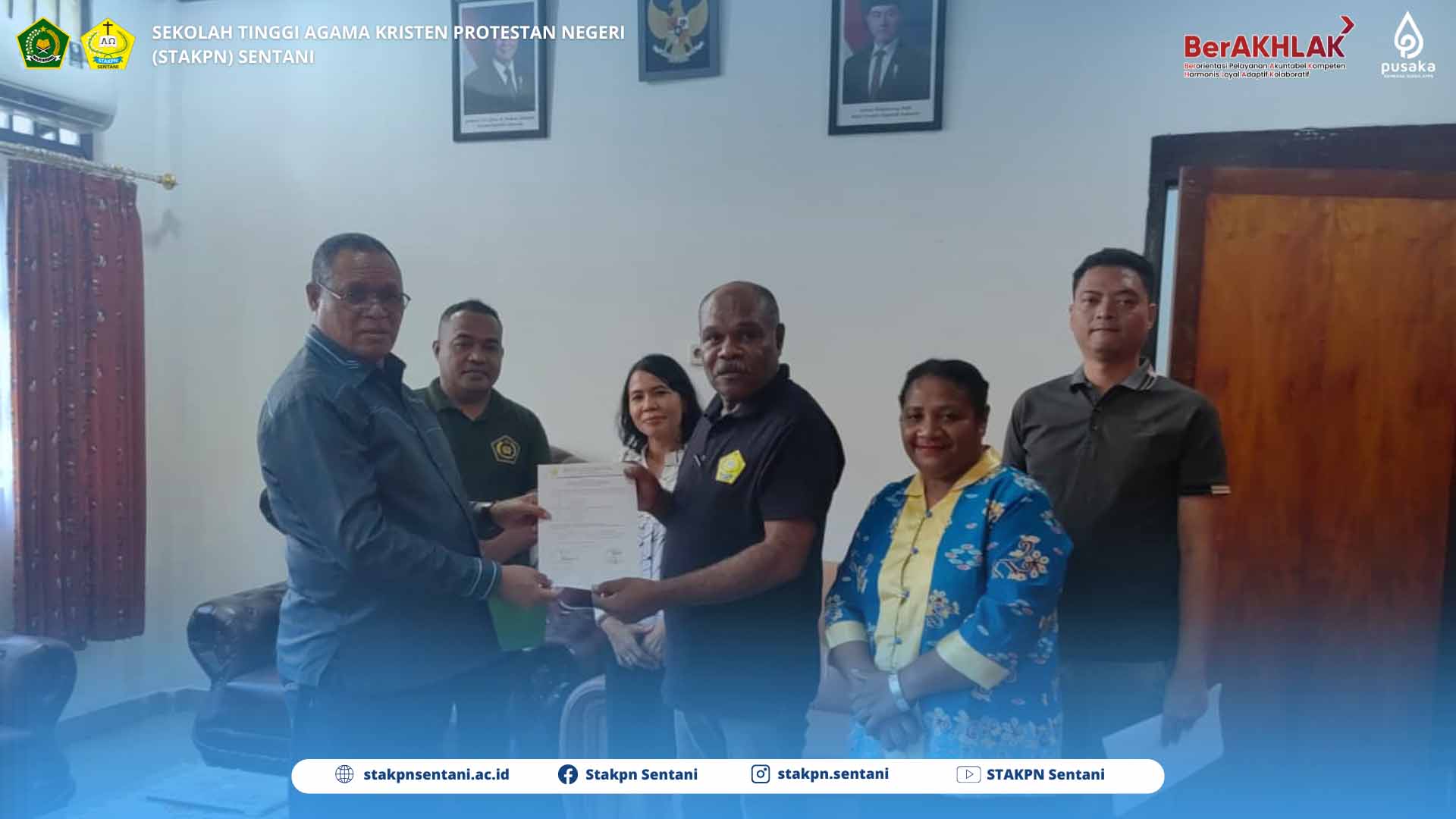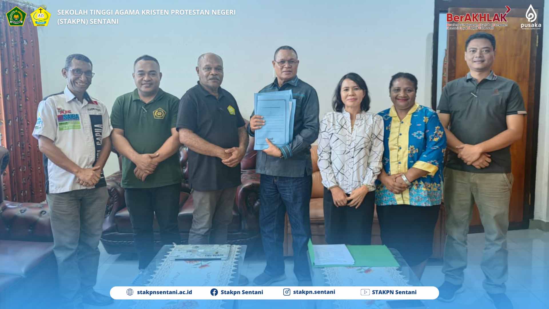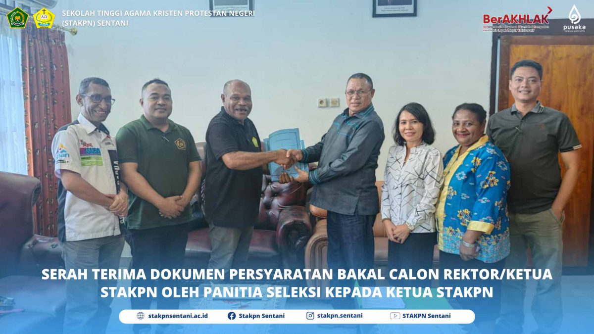 22/09/2025SENTANI — Ketua Sekolah Tinggi Agama Kristen Protestan Negeri Sentani Dr. Fredrik Warwer, M.Th dan Ketua Panitia Seleksi Calon Rektor/Ketua STAKPN Sentani Noseni Petrus Dimara, S.Th melakukan serah terima berkas Bakal Calon Rektor/Ketua periode 2026-2030. Serah terima berkas bakal calon dilakukan di ruang Ketua STAKPN Sentani Gedung Rektorat STAKPN Sentani pada hari Jumat (19/09/2025).