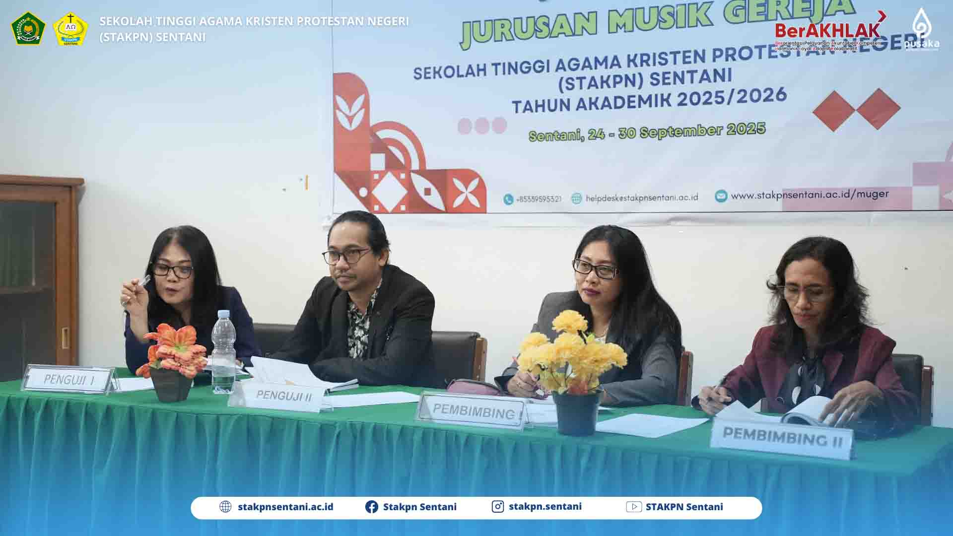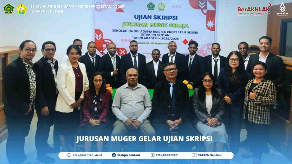 01/10/2025SENTANI — Sekolah Tinggi Agama Kristen Protestan Negeri (STAKPN) Sentani menyelenggarakan Ujian Skripsi bagi mahasiswa Jurusan Musik Gereja tahun akademik 2025. Ujian tersebut dilaksanakan di ruang rapat Jurusan Musik Gereja pada 24–30 September 2025 dengan jumlah peserta sebanyak 29 orang mahasiswa.