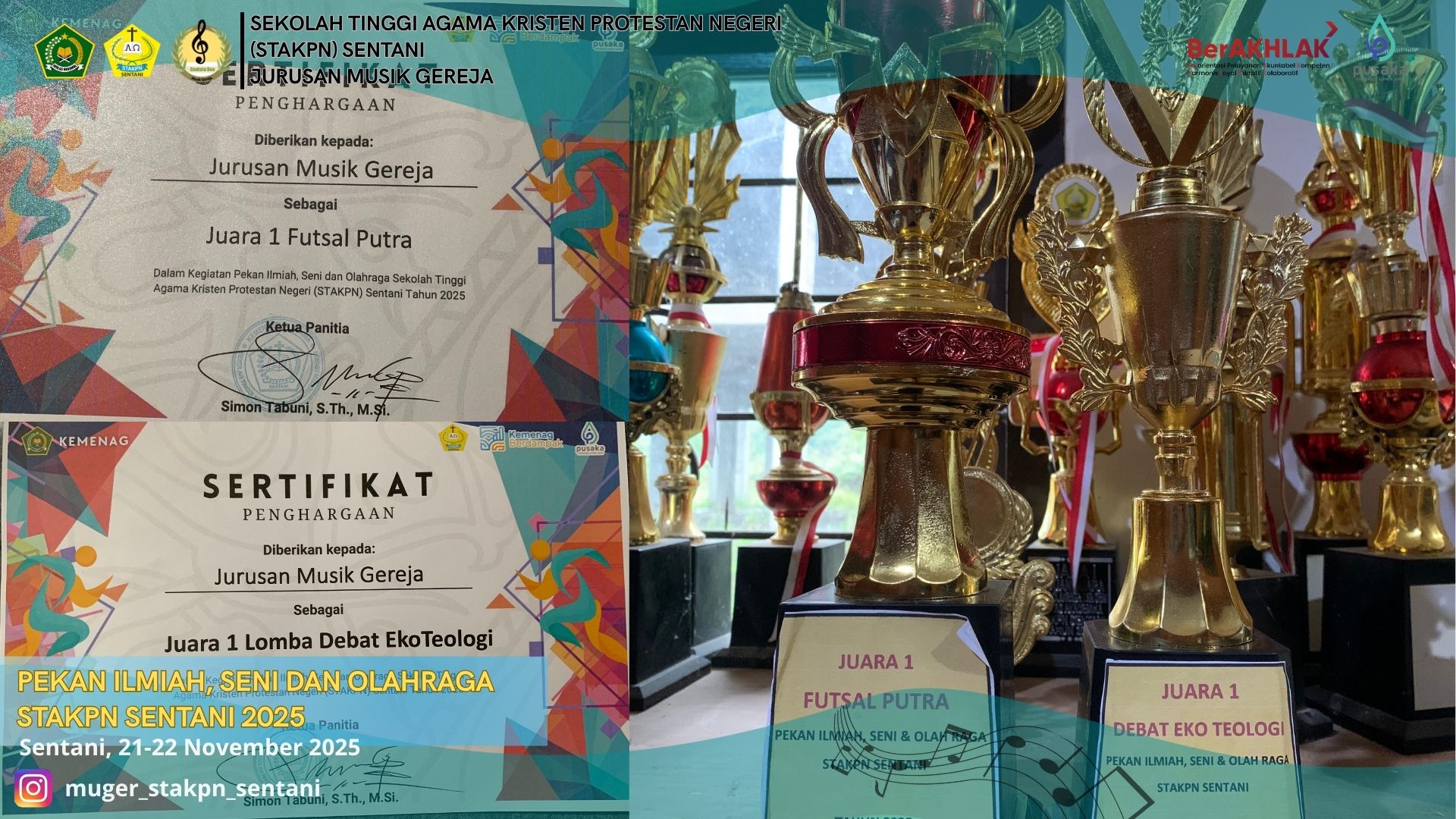 30/03/2026SENTANI- Jurusan Musik Gereja menorehkan capaian prestasi dalam kegiatan Pekan Ilmiah, Seni, dan Olahraga Civitas Akademika STAKN Sentani yang diselenggarakan pada tanggal 21–22 November 2025. Kegiatan ini merupakan agenda institusional yang mempertemukan seluruh jurusan dalam rangka pengembangan potensi mahasiswa, baik dalam aspek akademik maupun non-akademik.