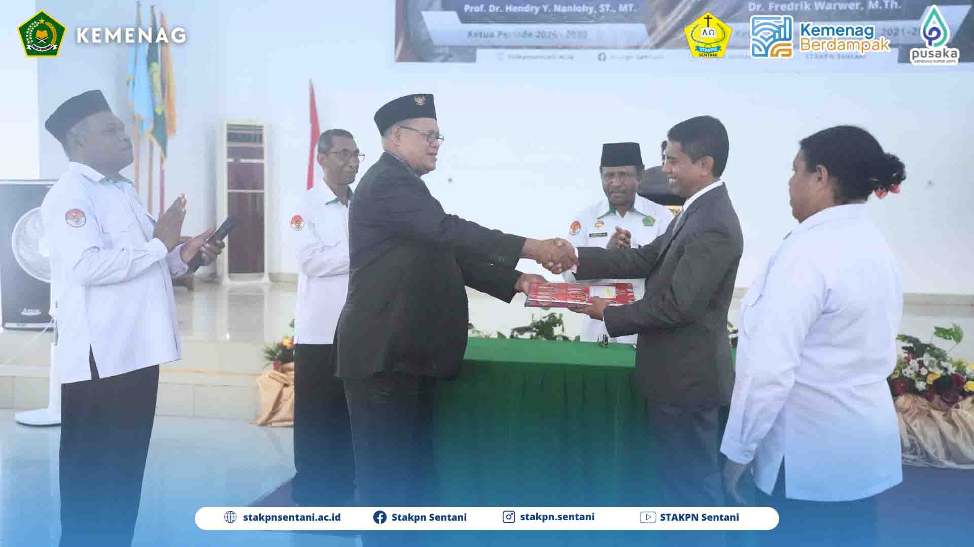 31/03/2026SENTANI — Serah terima jabatan Ketua Sekolah Tinggi Agama Kristen Protestan Negeri (STAKPN) Sentani periode 2026–2030 berlangsung dengan khidmat pada Senin (30/3/2026) bertempat di Aula GSG Manuri. Acara ini menandai pergantian kepemimpinan dari pejabat lama kepada pejabat baru dalam upaya melanjutkan pembangunan dan peningkatan mutu pendidikan di lingkungan STAKPN Sentani.